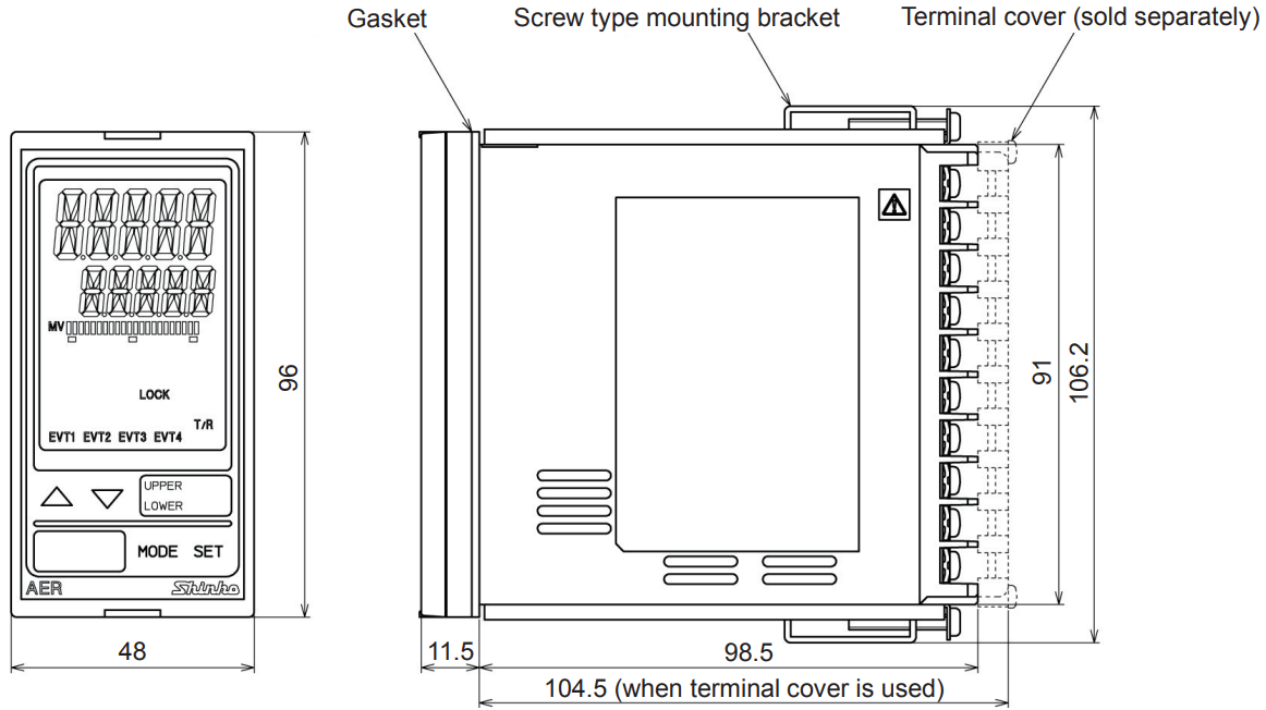 Shinko Technos AER-102-ECH là thiết bị đo độ dẫn điện không điện cực dạng lắp tủ, kích thước 48 × 96 mm, mặt trước IP66, phù hợp cho môi trường khắc nghiệt, dung dịch hóa chất và hệ thống nước có độ dẫn cao.
